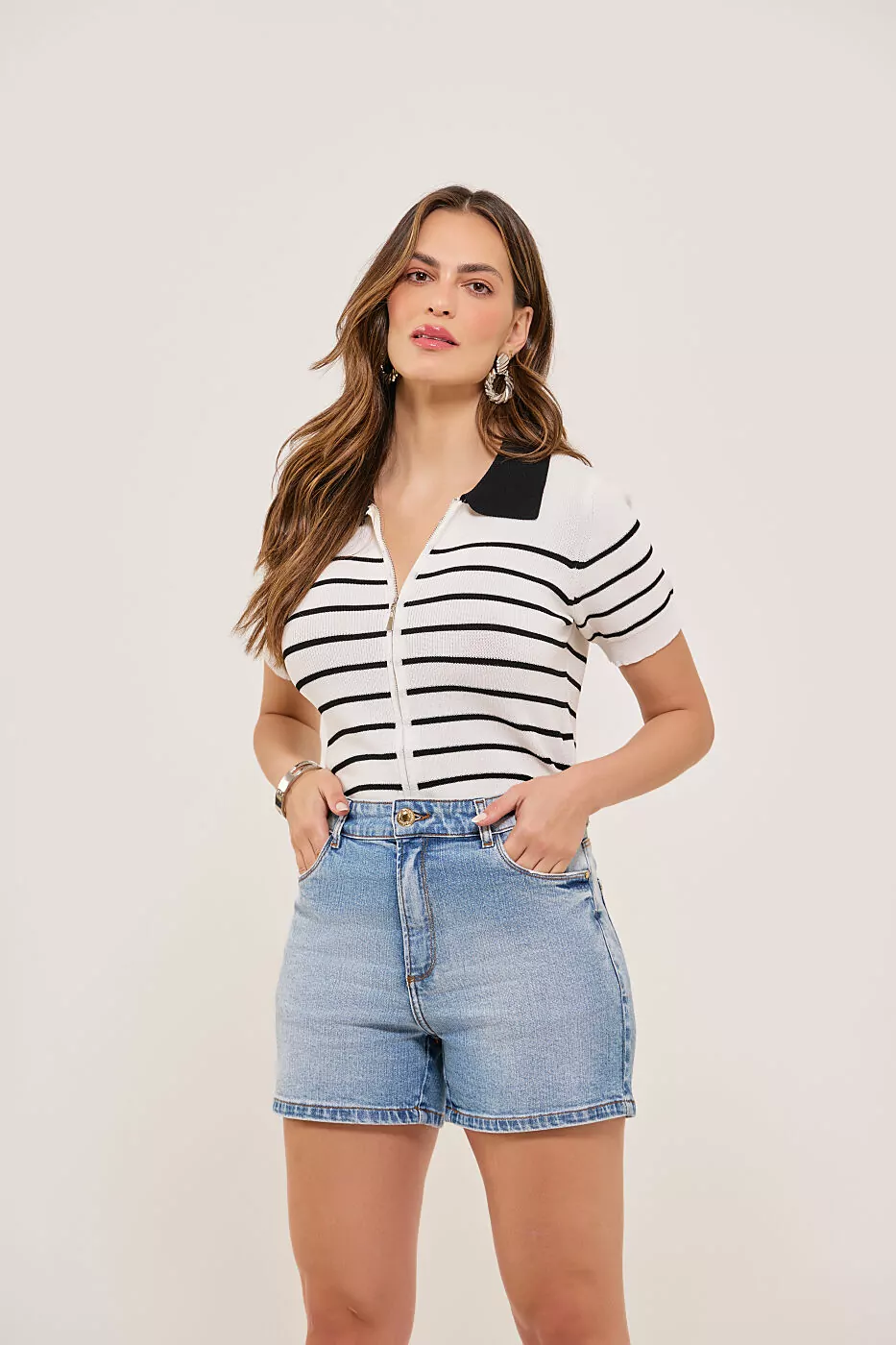 Uma blusa de tricô com zíper na frente é uma peça versátil e prática. Essa característica do zíper na parte frontal torna fácil vestir e ajustar a blusa, além de adicionar um elemento de estilo interessante.
